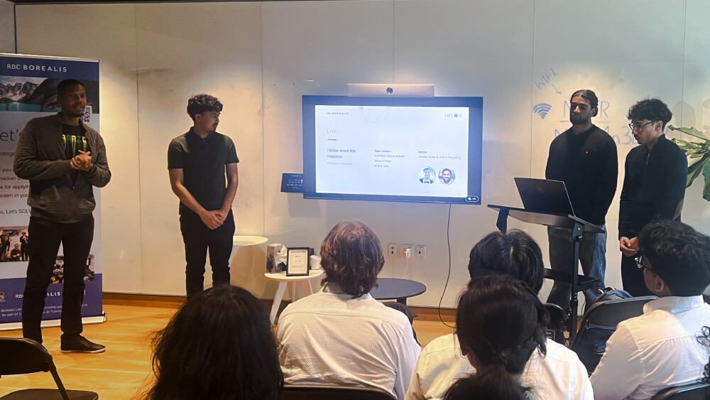 From McMaster University, the team developed CardioVision, a predictive model that uses AI to analyze patient data and predict the risk of cardiac arrest. By improving early detection, their project has the potential to transform clinical decision-making, enabling faster interventions and ultimately saving lives.